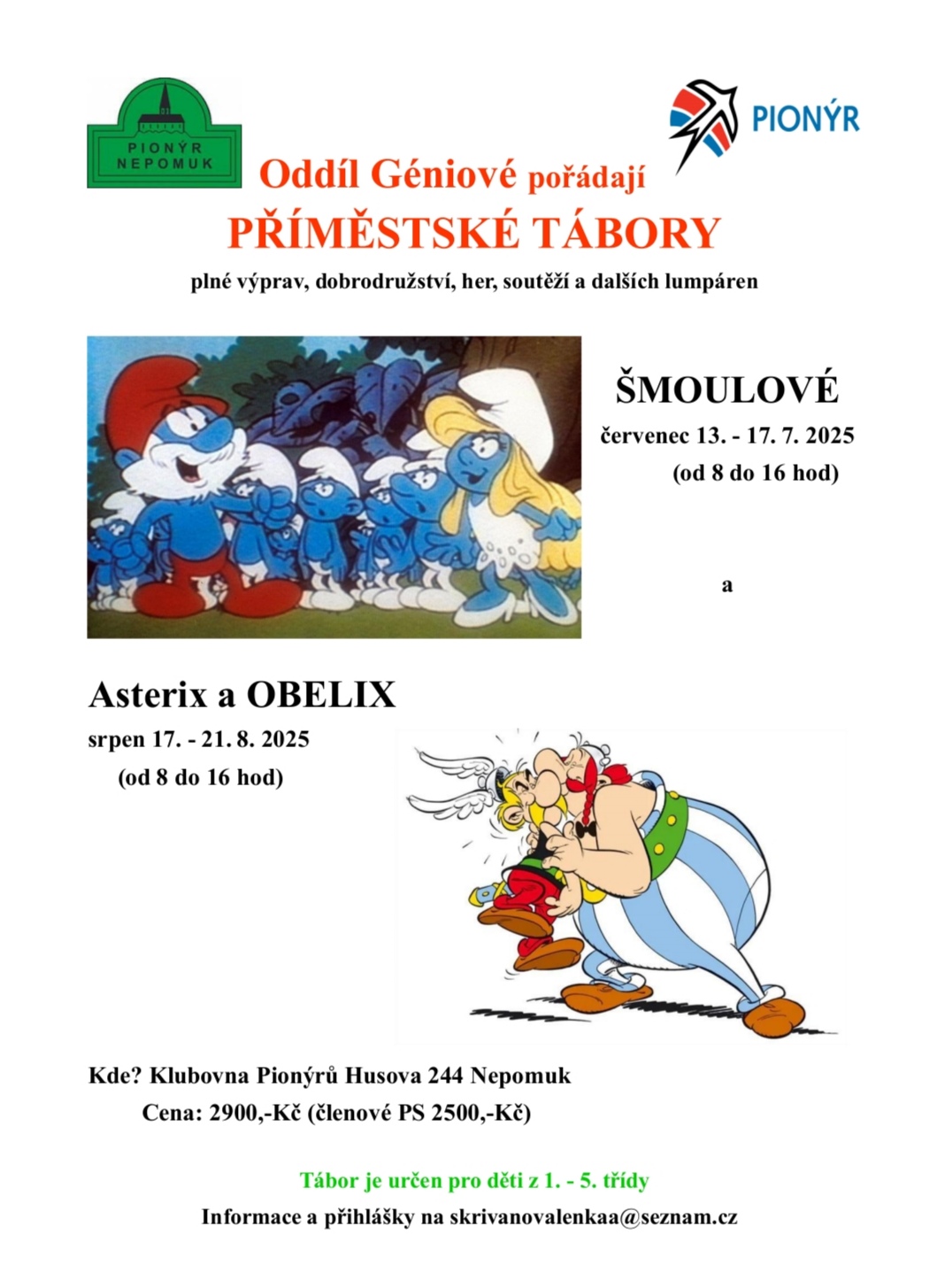 13. 7. - 17. 7. 2026 Pořadatel: Místo konání: Pionýr Nepomuk, Plzeňský